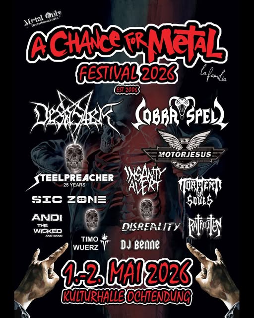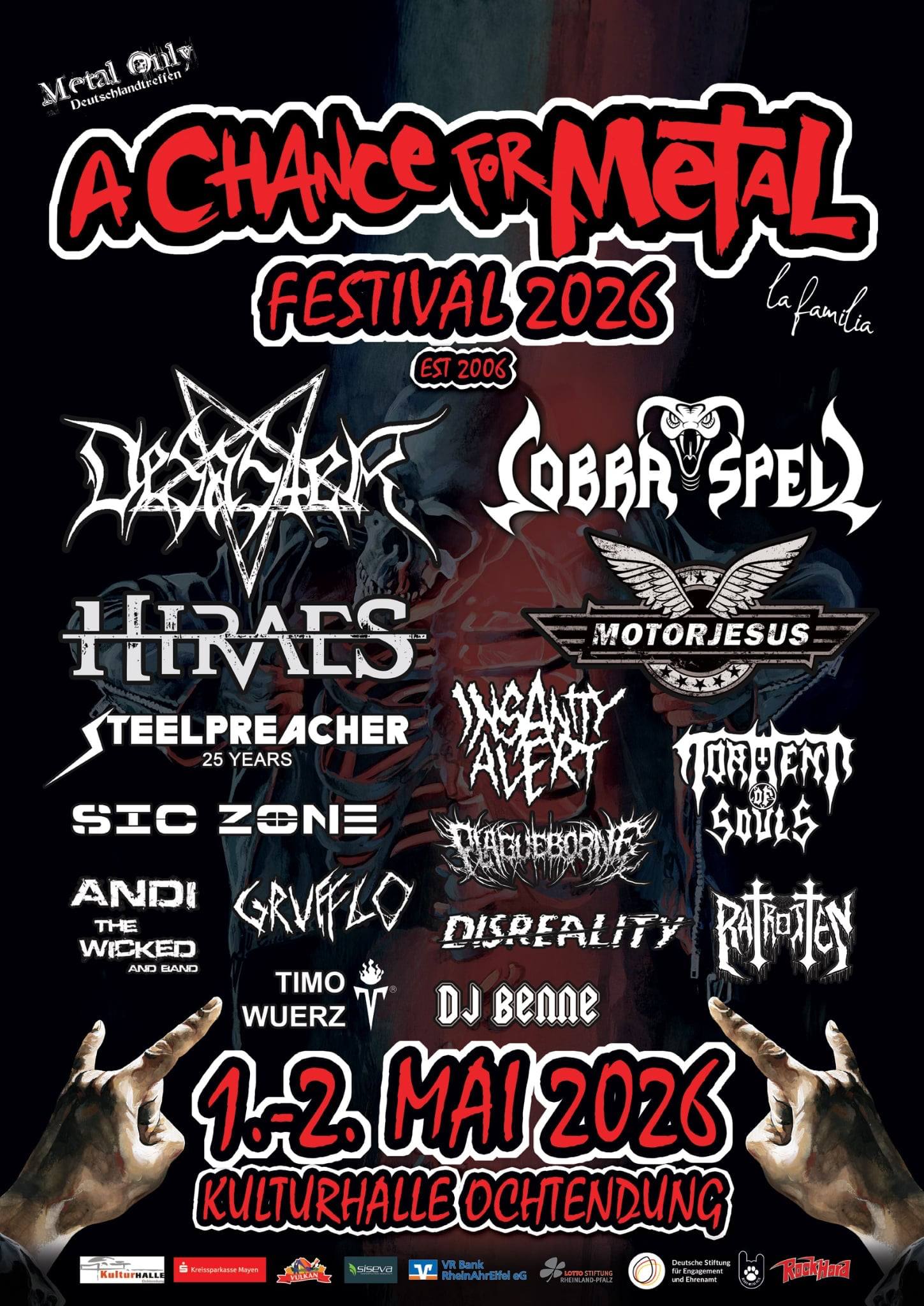Wir freuen uns, euch beim A CHANCE FOR METAL FESTIVAL 2026 in Ochtendung begrüßen zu dürfen – es wird phänomenal! \\\\M/