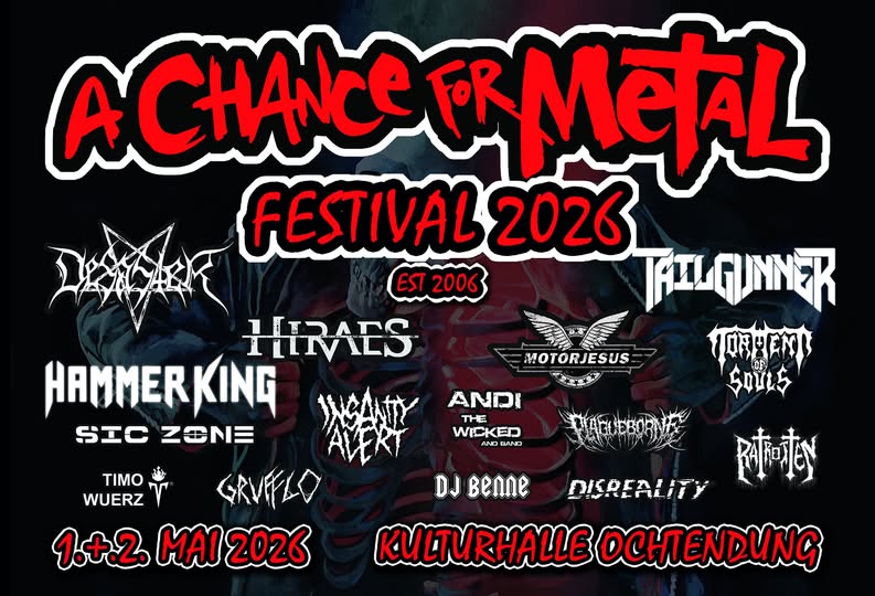 Wir freuen uns, euch beim A CHANCE FOR METAL FESTIVAL 2026 in Ochtendung begrüßen zu dürfen – es wird phänomenal! \\\\M/