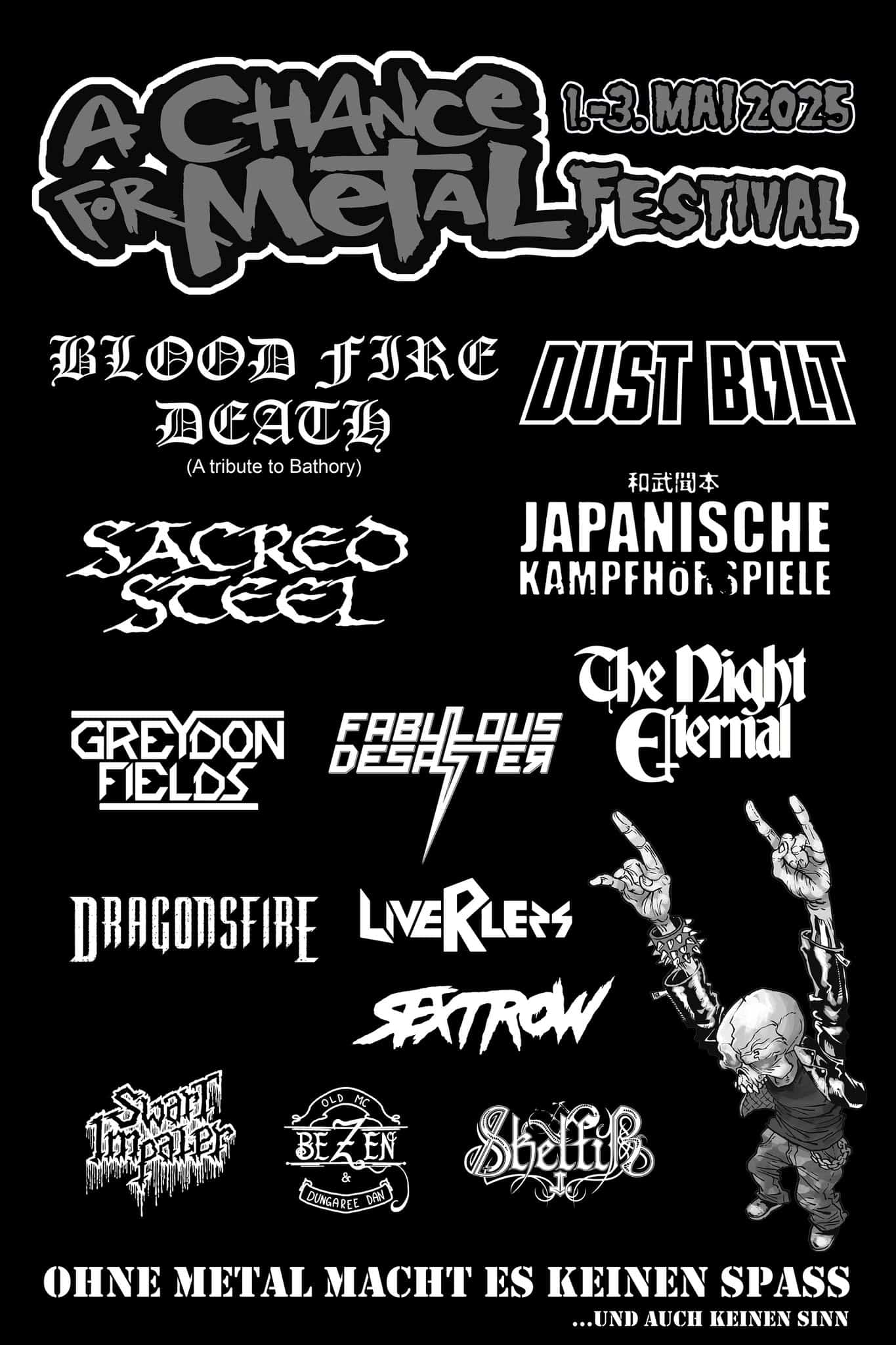 Natürlich gibt es auf dem A Chance for Metal Festival 2026 auch Merchandise. Sichert euch das offizielle Motiv als Shirt, Girlie und Zoodie.